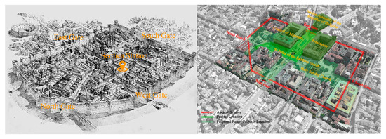 According to United Nations Education Scientific and Cultural Organization (UNESCO) guidelines, in situ protection is the first option for archeological sites because it could maximally preserve the historic and spatial context of the heritage [49]. Other than providing the best protection plan for the heritage, in situ protection of archaeological sites in urban public space could also increase accessibility to the heritage, providing people with a tangible connection to their city’s past and stimulating their awareness and respect for the heritage. The exhibition of archaeological sites could promote the tourism industry, and keeping the archaeological heritage within public monitoring could also increase financial help for protection and research and prevent future destruction of the heritage.