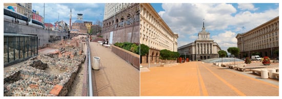 - Dikov, I. Bulgaria’s Latest Archaeology News, Top Archaeologists & Museums. Available online: https://archaeologyinbulgaria.wordpress.com/2015/04/08/bulgaria-to-complete-sofia-largo-open-air-museum-of-ancient-serdica-by-fall-2015/?utm_source (accessed on 27 September 2025).