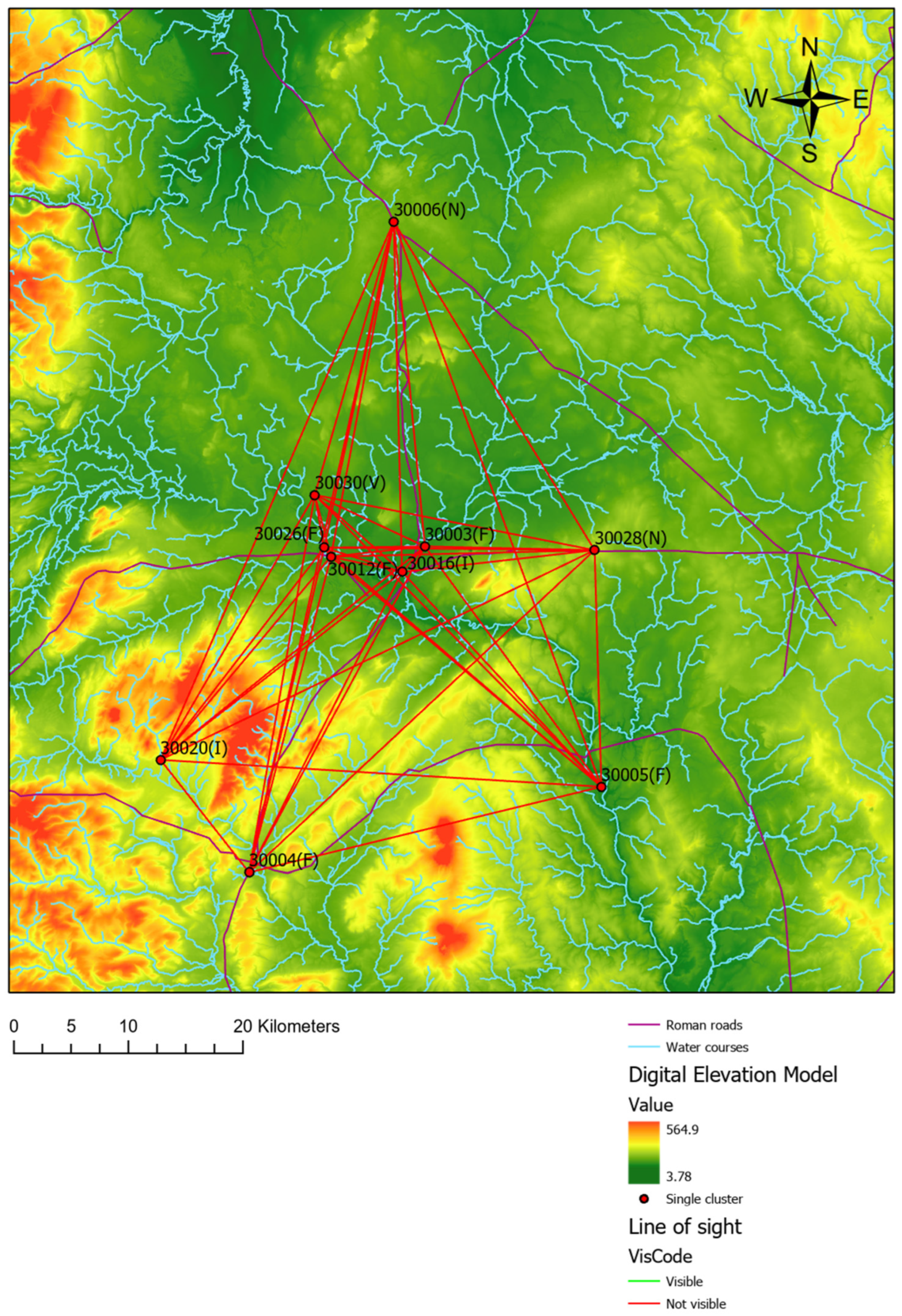 - Murphy, K.M.; Gittings, B.; Crow, J. Visibility analysis of the Roman communication network in southern Scotland. J. Archaeol. Sci. 2018, 17, 111–124. [Google Scholar] [CrossRef]