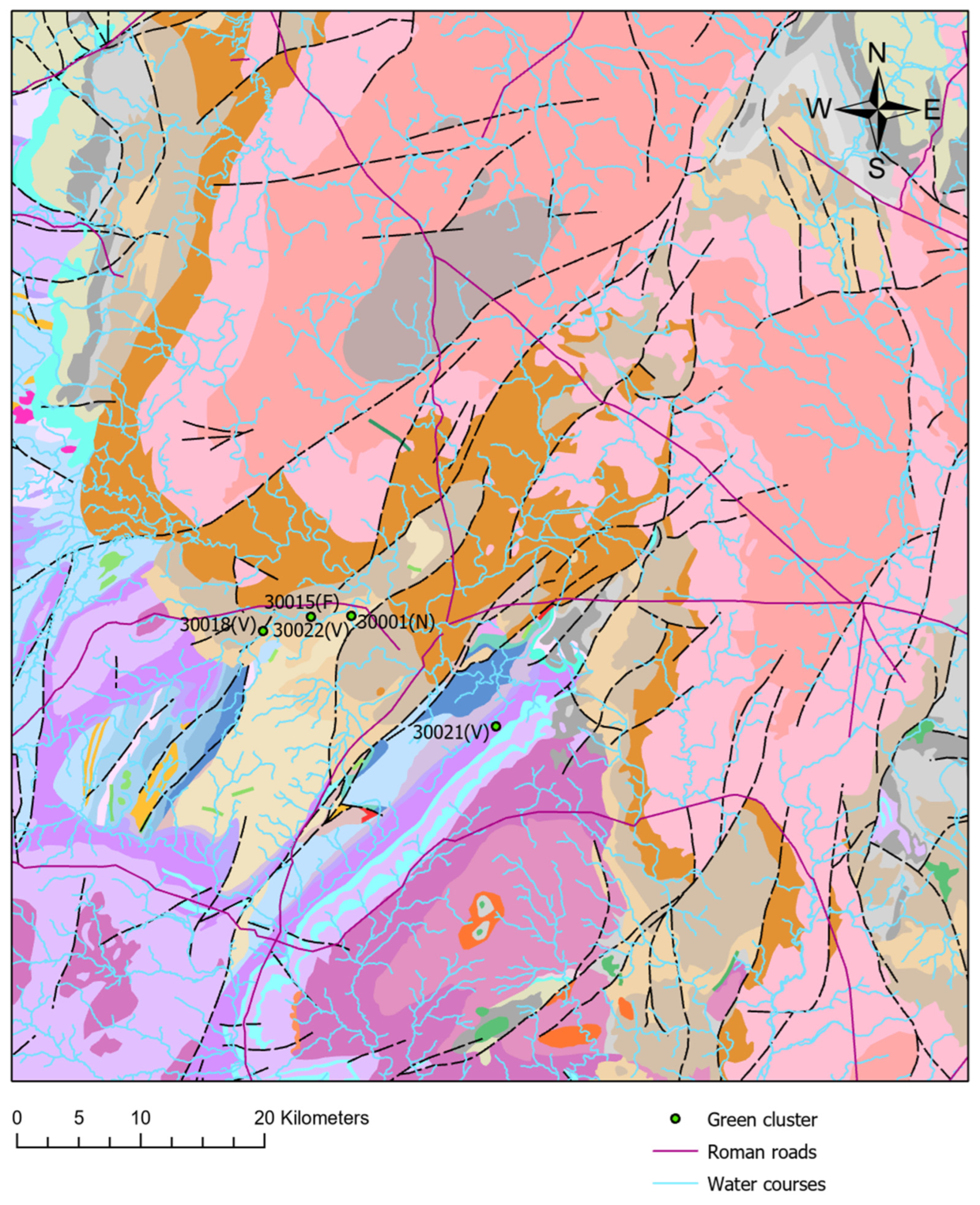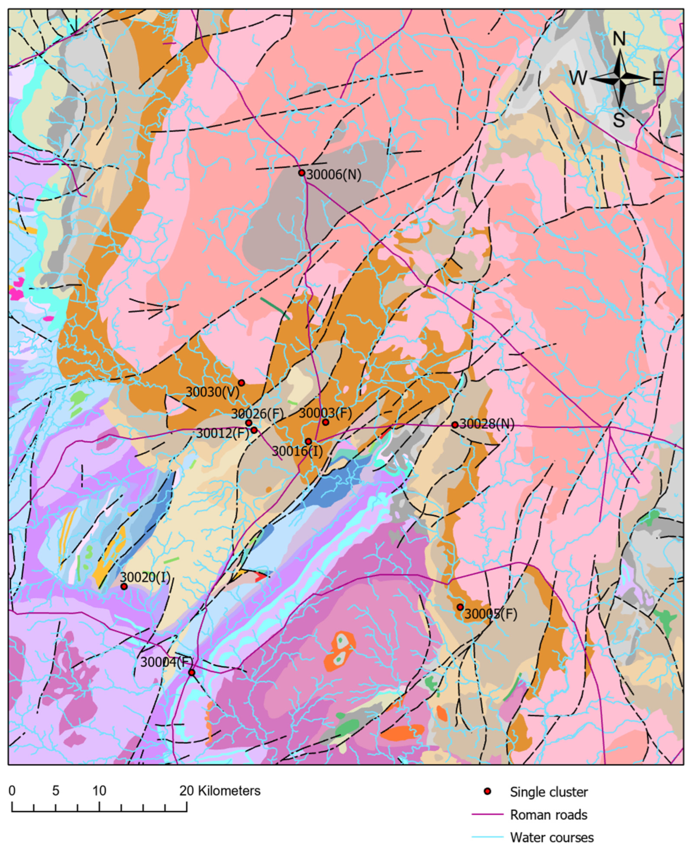 May, D.E. Analysing Factors Influencing the Distribution of Ancient Identities in a Large-Scale Landscape: The Case of Roman-Britain, Shropshire Region. Heritage 2025, 8, 453. https://doi.org/10.3390/heritage8110453