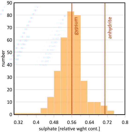 Histogram of sulphate contents (weight content) obtained by liquid chromatography on European alabaster artworks from the 12th to the 17th century (unpublished results, n = 340).