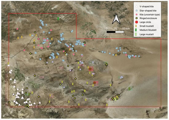 Distribution of kite, mustatil, and large circle structures.