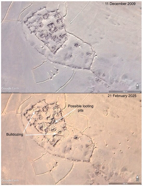 Identification of damage at the Tabuk South site 2009–2025 (Source: Google Earth).