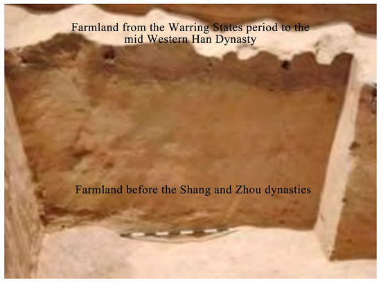 Archeological photos of farmland profiles discovered at the Han Dynasty settlement site in Sanyangzhuang.