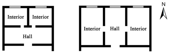 Schematic diagram of two planar forms of “one hall, two interiors”.
