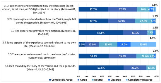 We thank Ryan Xavier D’Souza, director of the NL VR exhibition, for his support throughout the preparation and implementation of this study and for permission to reproduce scene images and video excerpts from the VR experience. We extend our appreciation to Viyan Khalaf Darwish from Yazda and Adiba Murad from the Yazidi Survivors Network for attending the data collection sessions and answering the participants’ post-experience questions. We acknowledge the efforts of Salah Al Jabery, UNESCO Chair on Genocide Prevention Studies in the Islamic World at the University of Baghdad, for coordinating data collection in Baghdad. We also recognize the valuable contribution of our research assistants: Huda Bakhtiar Ibrahim, Khanda Sarchl Majeed, Khelan Salar Rashid, Shajwan Hama Amin Abdalla, Shagul Abubaker Ali, Abdulrahman Mahamad Amin, Mohammed Rzgar Abdalla, Khazan Faraydoon Salih, Sara Dhiaadin Bahaadin, Maryam Adnan M. Ghareeb, Balen Salar Rashid, Murooj Imad, Besar Faris Azeez, Sanaria Jangiz, Wafa Khalid, and Haryad Hawar during data collection and processing. Additionally, we thank Ahmad Ibrahim Hama Amin for designing the graphical abstract for the paper. Finally, we thank Cultural Factory in Sulaimani, Erbil Polytechnic University, the University of Duhok, and the IOM office in Kirkuk for hosting our data collection sessions.