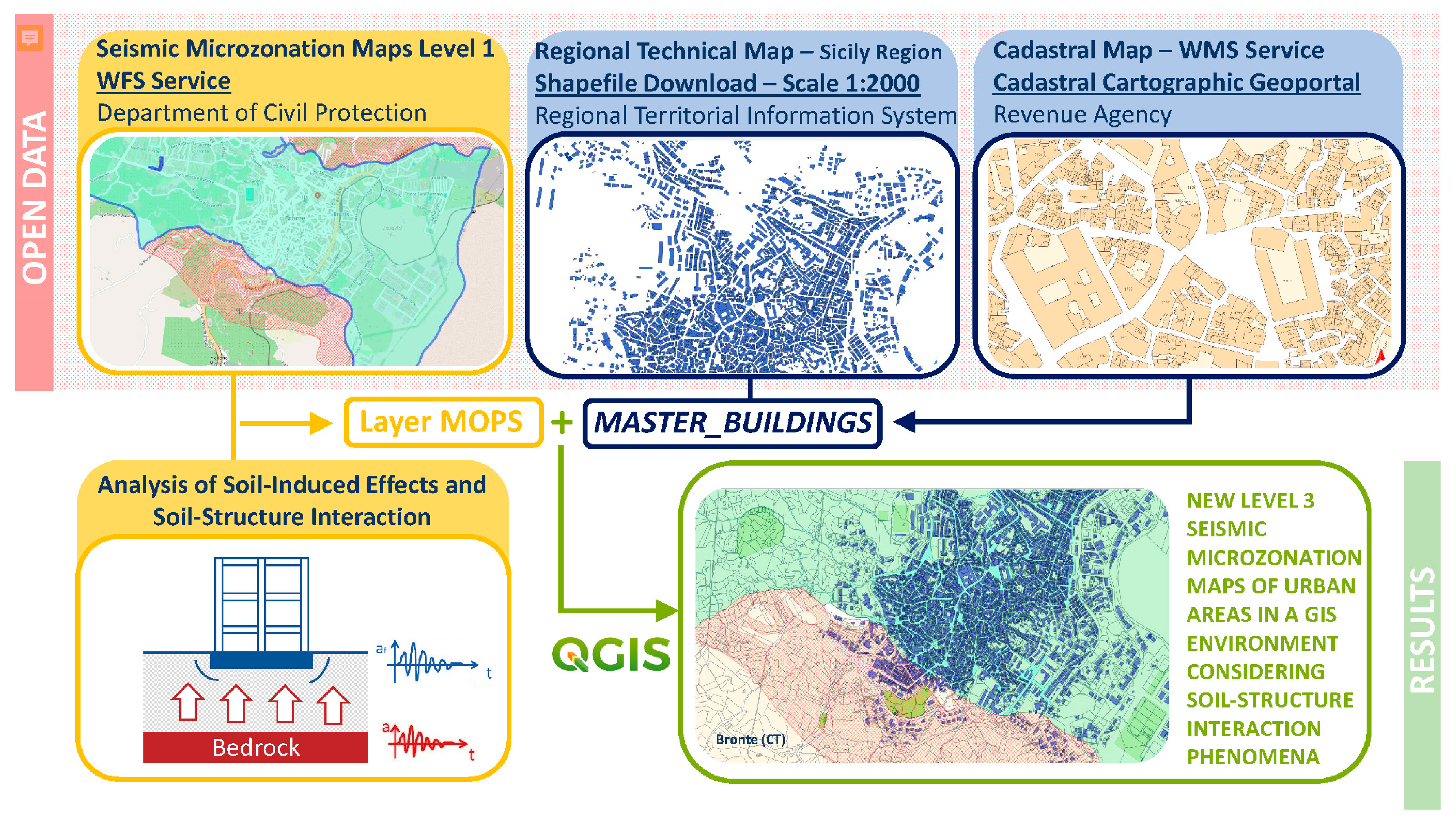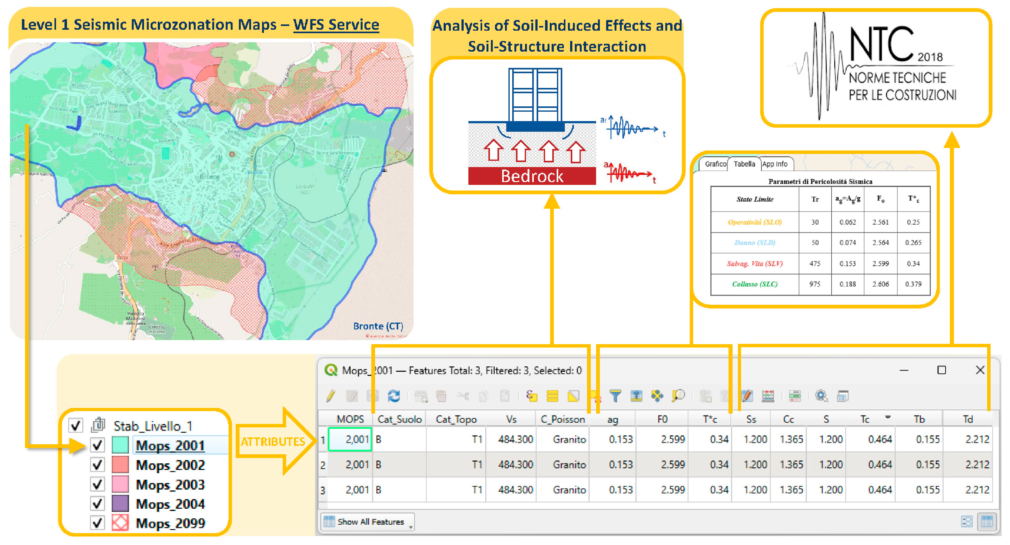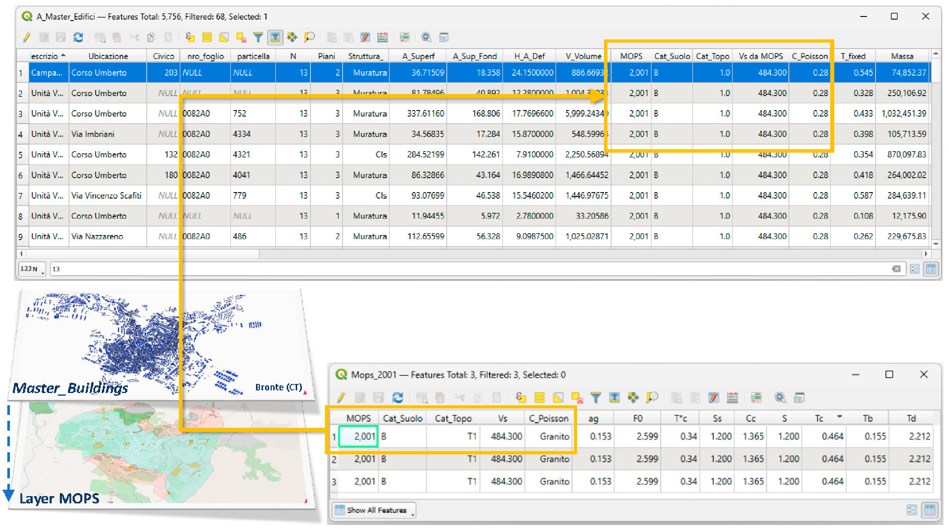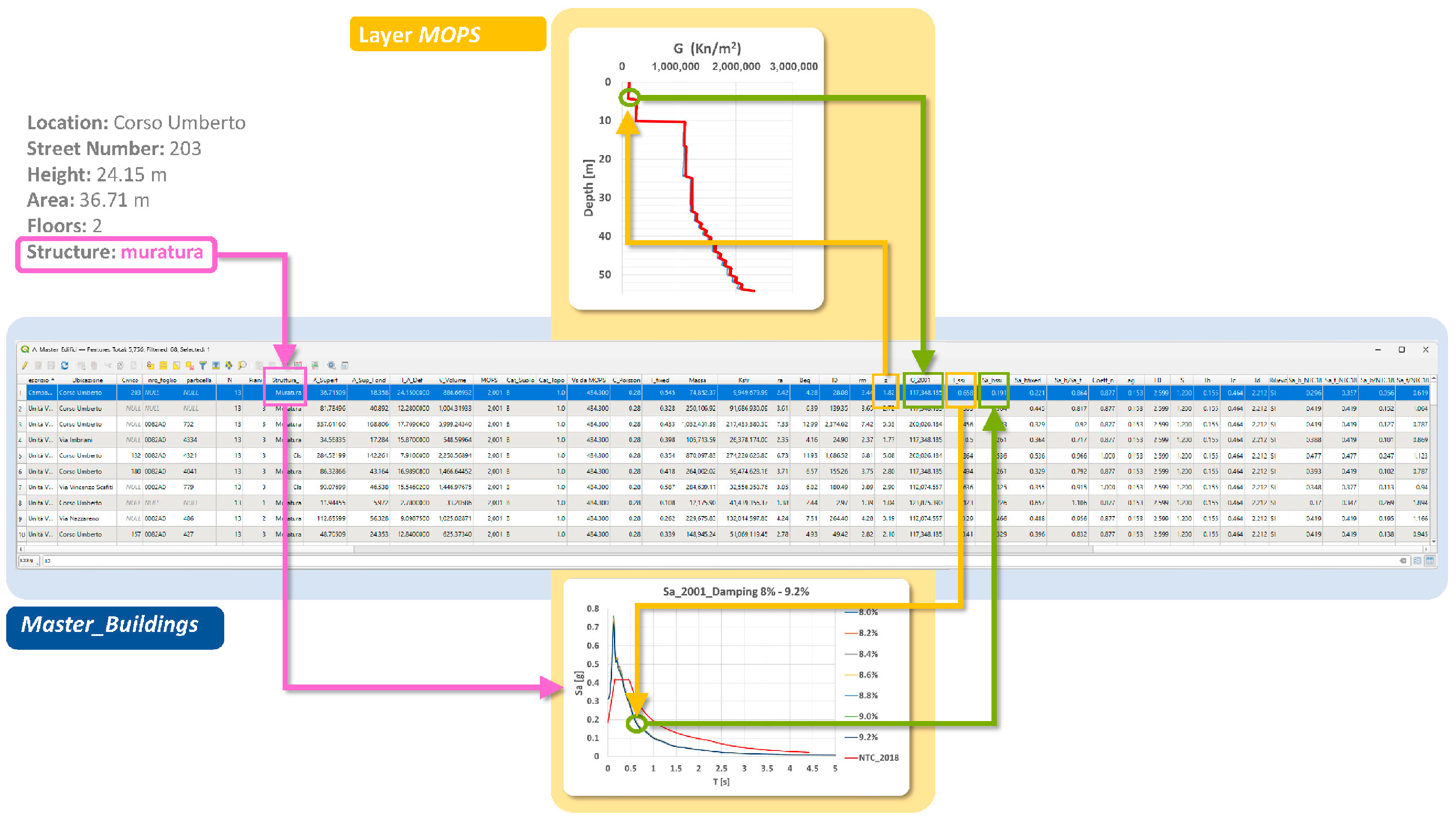 - Spatial Linking of Microzonation Data to Building Assets: assigning detailed seismic and geotechnical properties from “Microzones Homogeneous in Seismic Perspective” (MOPS) to each building based on its location;