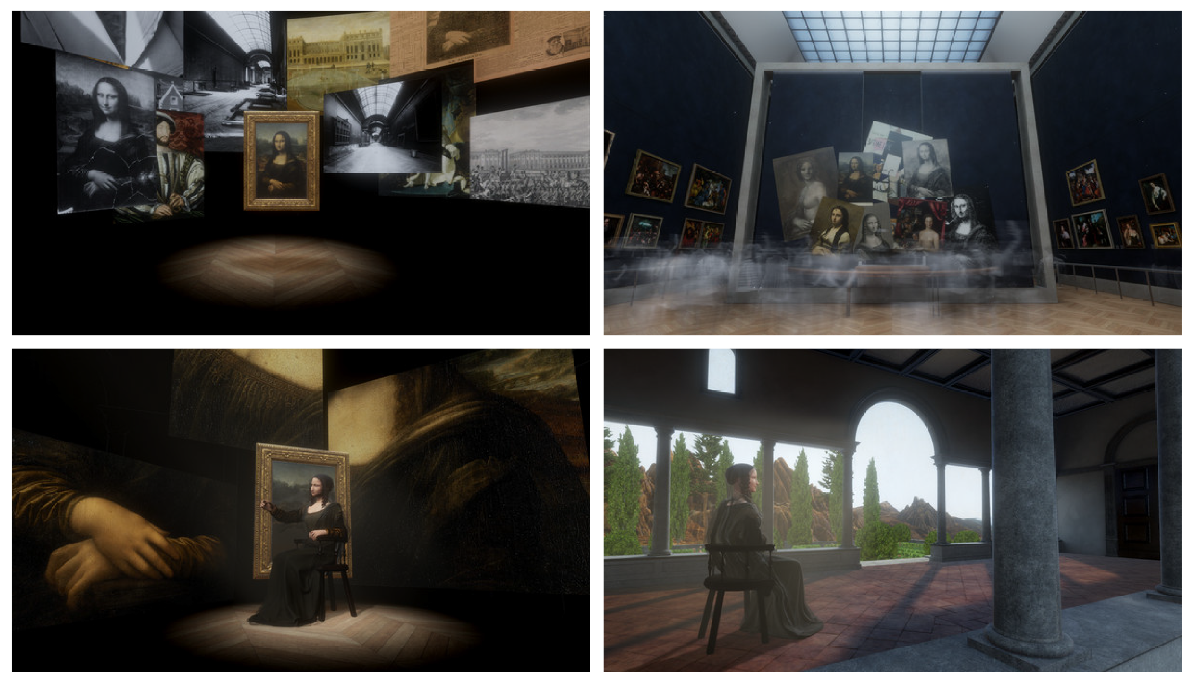 Promotional stills from the VR application Mona Lisa: Beyond the Glass. All four images were obtained from the official Steam store page and are used here for academic purposes [37].
