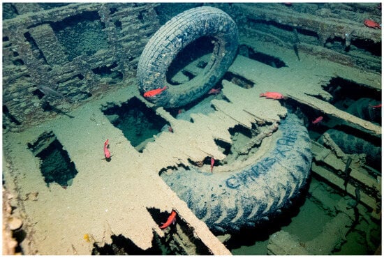 - Collings, P. 75 Years Underwater: The Story of the “Thistlegorm”: Sunderland to Sha’ab Ali; Deep Lens Publishing: Columbus, OH, USA, 1987. [Google Scholar]