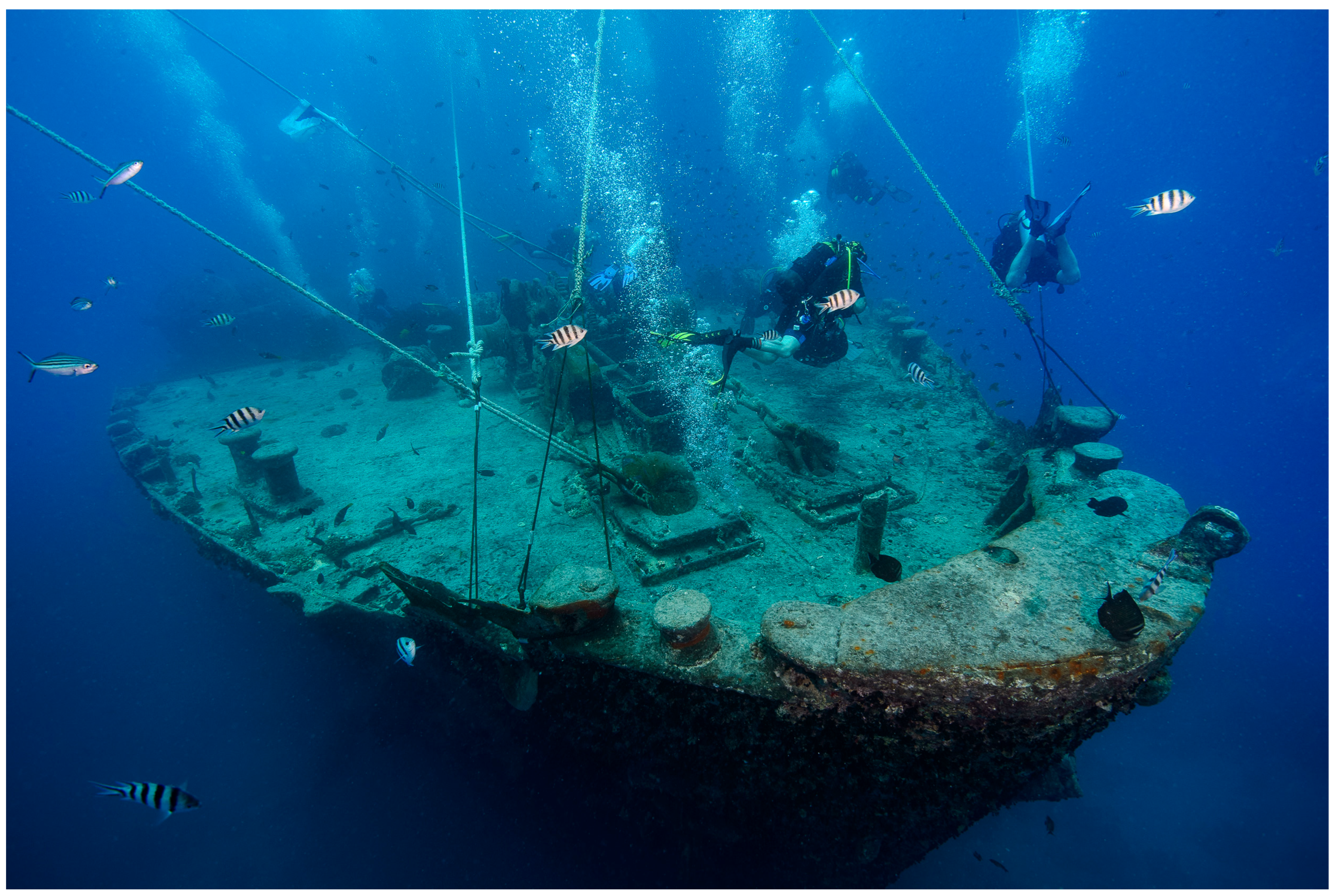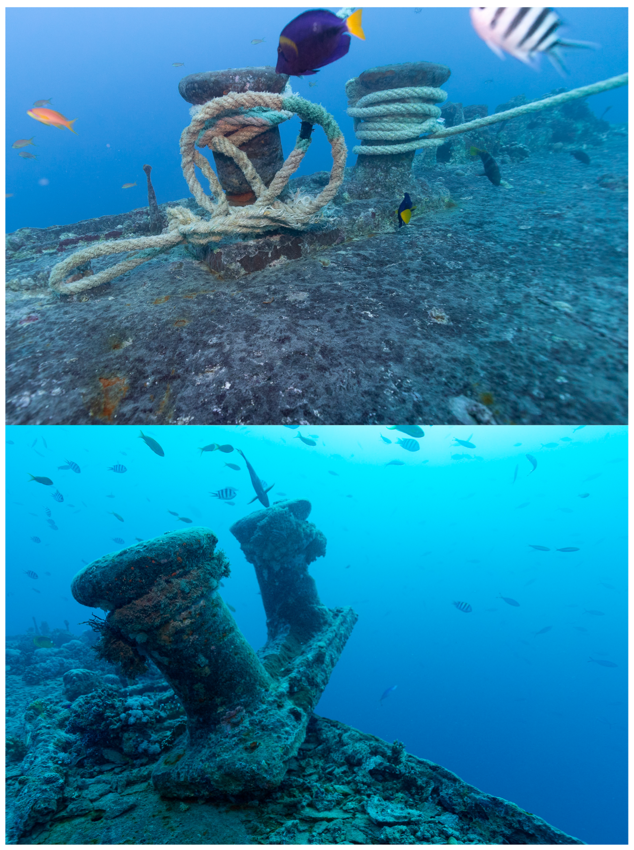 Mooring practices have further contributed to the wreck’s gradual degradation. With no viable alternatives, dive vessels continue to secure lines directly to the ship, causing structural wear. Although some mitigation measures, such as shifting from steel hawsers to nylon ropes, have reduced immediate damage, fresh oxidation, and dimensional changes to key structures like the propeller shaft indicate ongoing strain on the wreck.