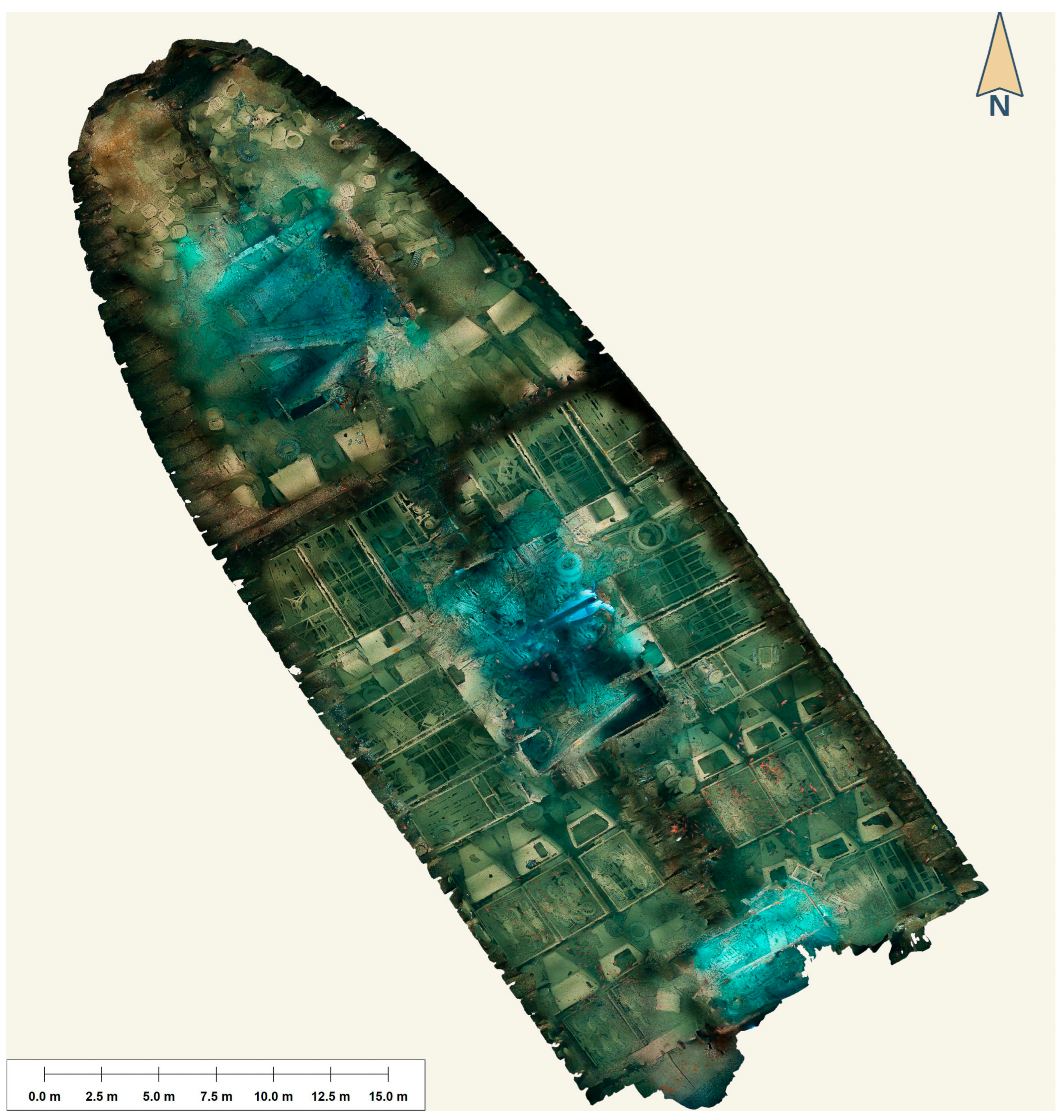 The equipment, techniques, and methods used to digitally record this large and complex wreck through photogrammetry, alongside the survey design and photogrammetric workflow followed, are discussed by the authors in detail in a previous paper [