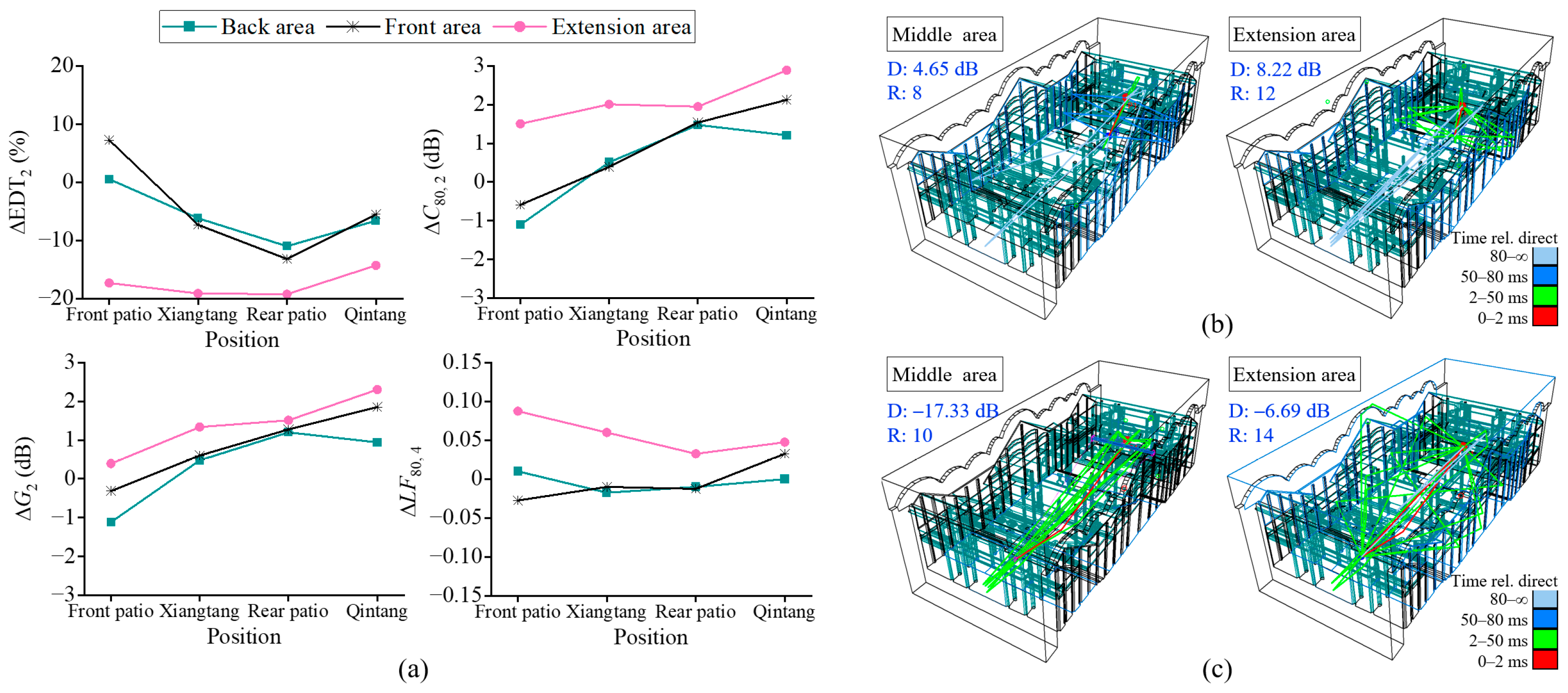 - Zhang, D.; Feng, Y.; Zhang, M.; Kang, J. Sound Field of a Traditional Chinese Palace Courtyard Theatre. Build. Environ. 2023, 230, 109741. [Google Scholar] [CrossRef]
