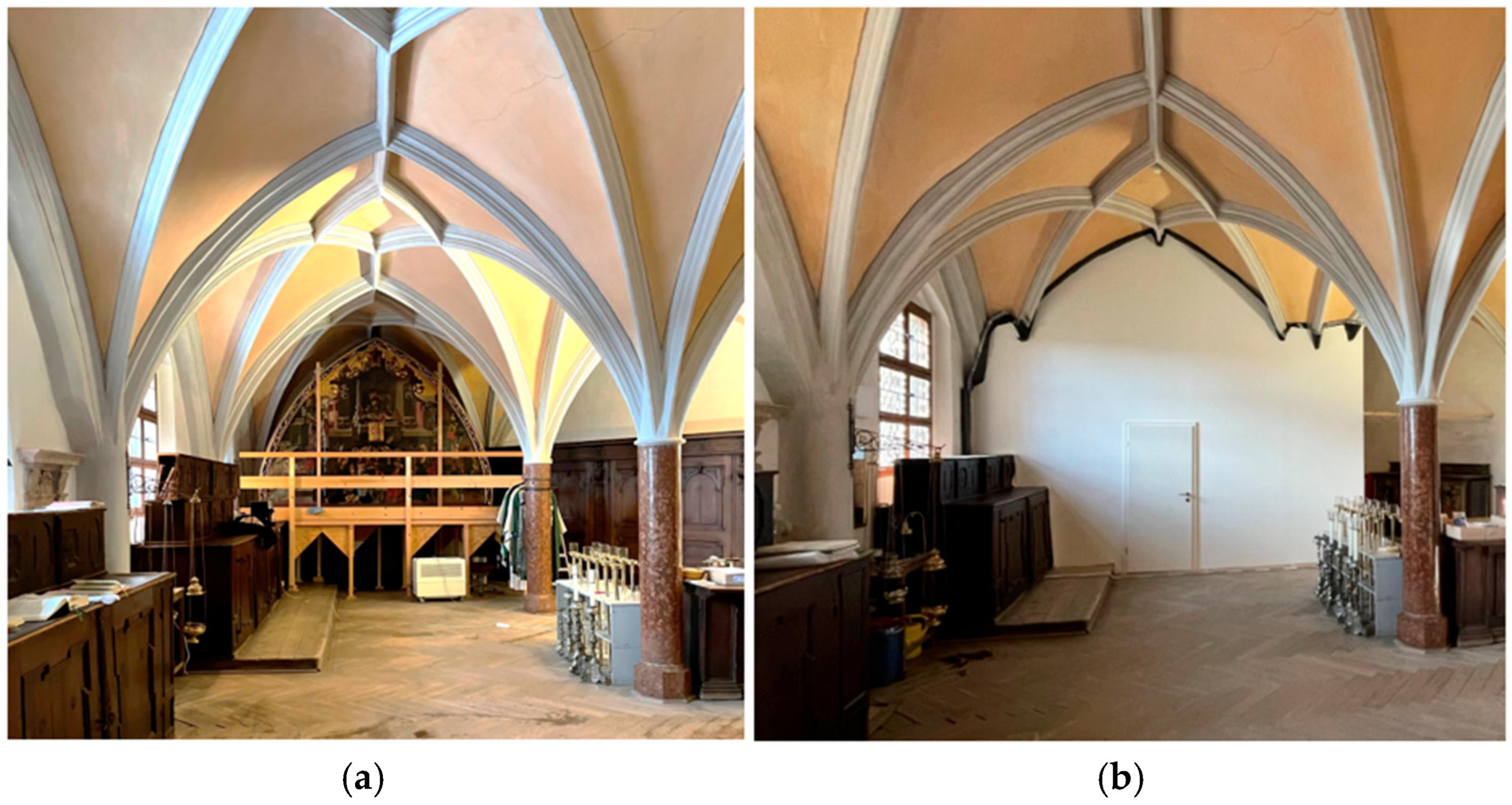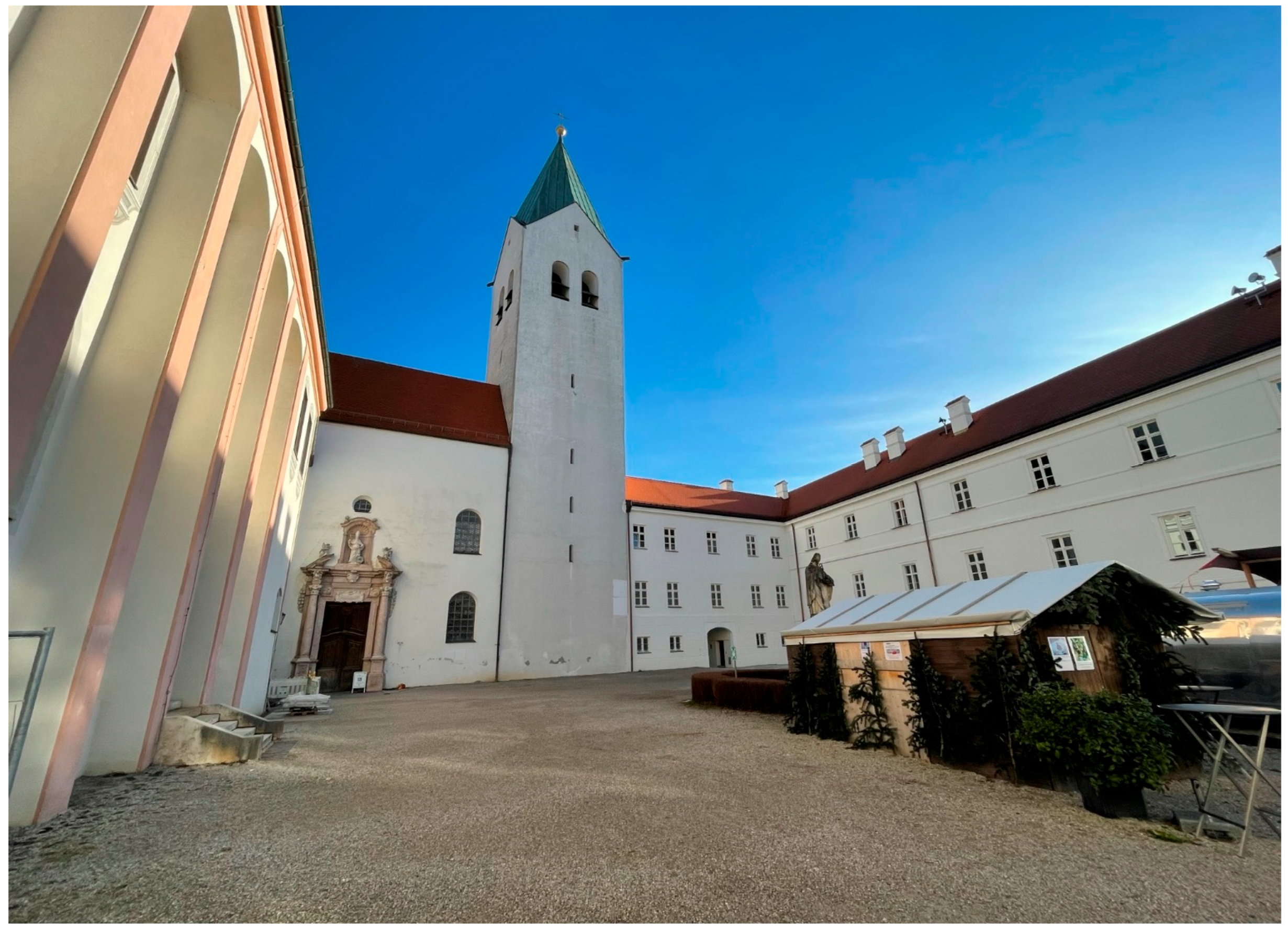 - Nadler, S.; Hildebrandt, M. Freising Domkirche Mariä Geburt und St. Korbinian; BLfD Archiv: München, Germany, 2004. [Google Scholar]