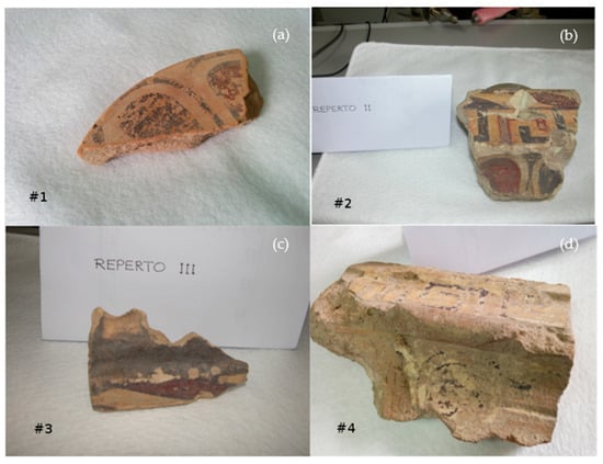 The analysis was focused on the study of the elemental composition of some architectural fragments subjected to a firing process dating from the sixth century BC. The analysed fragments are illustrated in Figure 3.