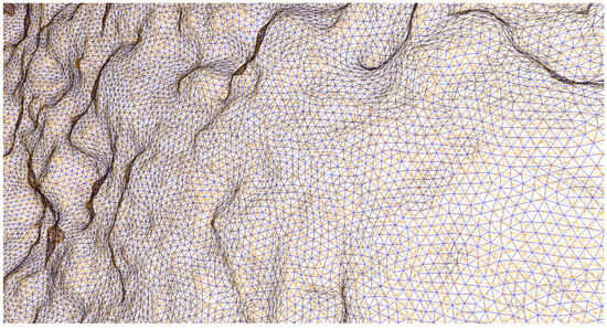 The creation of textured models was accomplished for representation and study purposes, but for the final aims of the museum project (involving 3D printing for tactile art), this further step was not needed. To deliver a more effective product for 3D printing, the models were also optimized. The optimization procedure involved a global remeshing of all the meshes, restructuring the entire set of polygons that formed the surface of the models. More specifically, this process replaced or redistributed the original polygons to achieve a more uniform and regular configuration across the entire mesh. It ensured that the polygons had a consistent and optimized shape and that their edge lengths were as uniform as possible. This unification eliminated topological irregularities and ensured an even distribution of polygons over the surface. By applying this process globally, the mesh became more coherent and better suited for subsequent operations, such as, in this case, 3D printing (Figure 6). After this final procedure—carried out with the isotropic remeshing algorithm in the Artec 3D software—the 3D resolution of the models was downscaled to 0.3 mm, with it still being sufficient for the purposes of the project (Figure 7).