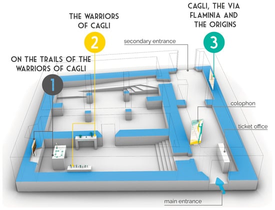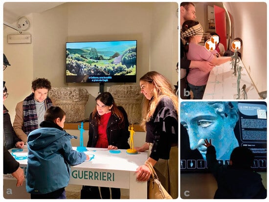 Conceptualization, F.G.; methodology, R.N.; software, R.N. and U.F.; validation, P.C. and F.G.; investigation, U.F.; resources, F.G. and M.B.; data curation, R.N. and U.F.; writing—original draft preparation, U.F.; writing—review and editing, R.N., F.G. and M.B.; visualization, U.F.; and supervision, P.C. and R.N. Contributions to each section are as follows: Section 1. Introduction, R.N. and U.F.; Section 2. Related Works, U.F. and M.B.; Section 3.1. The Next-Museum project, R.N.; Section 3.2. The pilot case, F.G.; Section 4.1. User experience design for three installations, R.N.; Section 4.2. “The warriors of Cagli”: from real to digital and vice versa, U.F. and R.N.; Section 4.3. “On the trails of the warriors of Cagli”: The storytelling, F.G.; Section 4.4. “Cagli, the Via Flaminia and the Origins”: interactive story map, U.F.; Section 4.5. Inclusivity and accessibility: design for all, M.B.; Section 5.1. I Pre-opening design verification and validation tests, M.B.; Section 5.2. User evaluation of post-opening satisfaction, U.F.; and Section 6. Discussion and conclusions, R.N. and U.F. All authors have read and agreed to the published version of the manuscript.