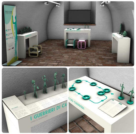 The content of this document reflects the views of only the authors, and the program authorities are not liable for any use that may be made of the information contained therein. The authors thank the other members of the working group: Daisy De Nardis, Alessandra Frontini, Romina Quarchioni, Tania Torresi, and Diego Voltolini. Special thanks are also extended to Avv. Andrea Agostini, Giorgia Barchi, Massimo Gatto, Francesco Gesualdi, Chiara Langianese, Benilde Marini, Cristina Perna, Federica Pierotti, Laura Pizzichini, Andrea Rossetti, and Rosanna Vigiani. The 3D prints and the finishing of the tactile bronze models were carried out by Stampaggi Industriali S.R.L. (Ancona, Italy), while the museum setup and digital installation were completed by STARK S.R.L (Cagli, Italy). For the motion graphic video “On the Trail of the Warriors of Cagli”, the authors thank Andrea Pietrella for its production and Fabio Mammarella for the voice-over. The images and 3D reproductions were provided by the Italian Ministry of Culture—Regional Directorate of Museums of Marche, with scientific consultation from the National Archaeological Museum of Marche and the Omero State Tactile Museum (Regional Directorate of Museums of Marche). Finally, the authors thank the Archaeological and Via Flaminia Museum of Cagli, the Municipality of Cagli, and the Municipality of Fano for granting access to the digital material used in the Virtual Tour.