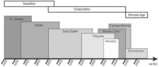Temporal representation of the different Sardinian cultures (data from Melis and Piras, 2010 [51]).