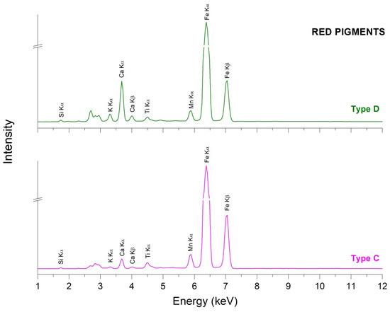 XRF spectra of the red pigments analyzed on TYPE C and TYPE D.