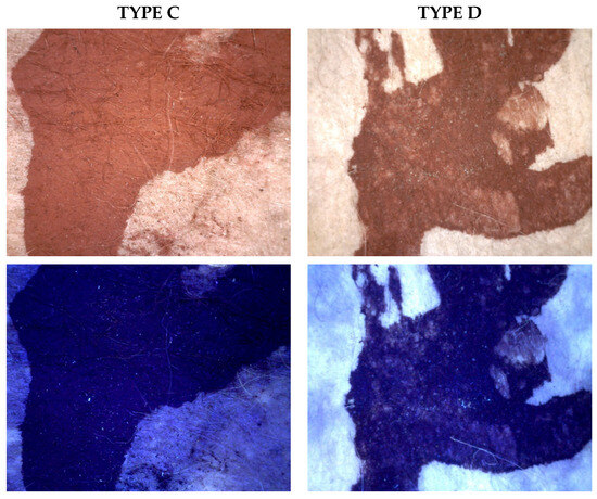 Comparison of optical microphotographs of the red areas on TYPE C and TYPE D prints. Bar: 50 µm.