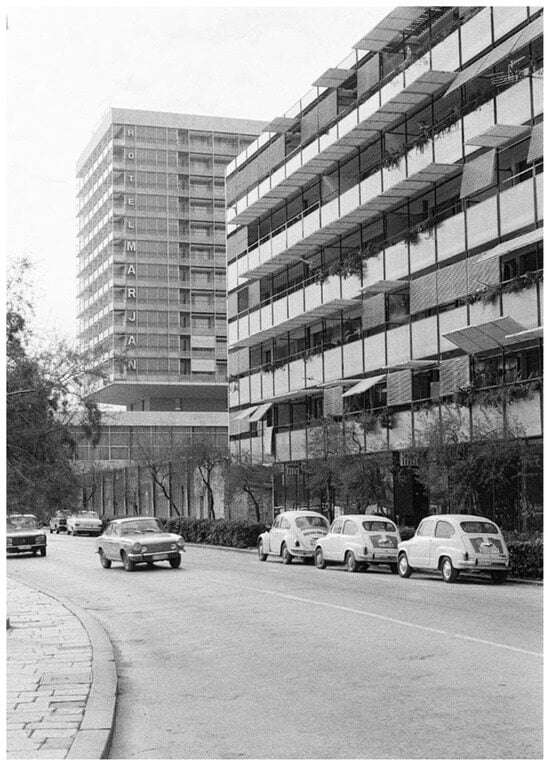 Some common features of the International style, such as large glazed surfaces, were strongly colliding with the Mediterranean climate. This is why Mediterranean architects often reached for regional architectural elements and interpreted them to solve the problem of heat and sun glaring. This can be seen in the works of the Italian architect Ignazio Gardela in his Casa Borsalino in Alessandria, Italy (1951–1953) and of the Spanish architect José Antonio Coderch in the ISM apartment block in Barcelona, Spain (1951) [40] (pp. 340–341). Buildings designed by Ivo Radić bear many features of the International style from the 1960s. However, Ivo Radić is one of the Croatian architects who successfully articulated the regional conditions of the Mediterranean climate with his architecture.