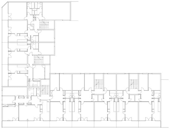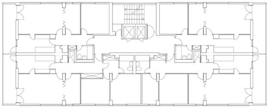 Apart from these typical apartments, at the southern corner of the building, one three-bedroom apartment per floor was designed, and at the northeast end of the building, two studios per floor were designed (Figure 11).