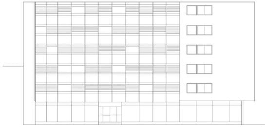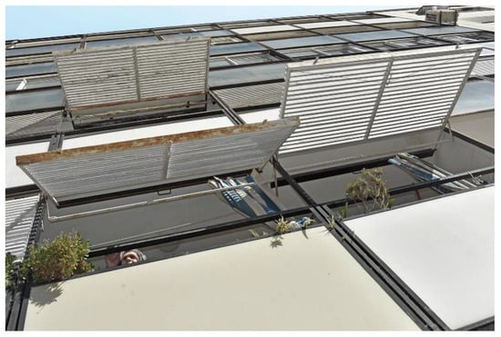 Series of loggia modules with their railings and jalousies is the main element of facade design. However, as in the towers in Bol, the closed parts of the façade are covered with asbestos cement panels (Figure 12, Figure 13 and Figure 14).