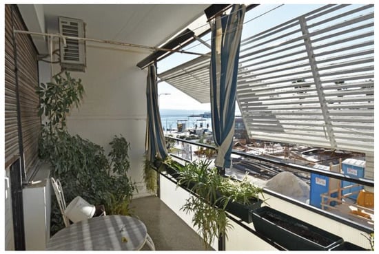 In the first building designed, Radić used the contemporary, commonly applied roller shutters as sun protection. In designing the building on the West Coast, he is taking a leap from the usual practice by inventing specific jalousies that are a creative interpretation of traditional sun protection in the Mediterranean. On the towers in Spinut, he designed sliding shutters that emphasise the flatness of the tower’s volume, reminiscent of the flat traditional solid stone buildings with closed jalousies. Sliding shutters or jalousies as sun protection became an important part of the architectural expression of Ivo Radić, which he would later develop and improve further throughout his career. Apart from Radić, such a design approach, which is characterised by the creative transposition of regional formal, spatial or ambient qualities, is represented in Croatia by I. Vitić, I. Emili and B. Kalogjera at that time [65]. In the international context, the regional approach to modernism positions Ivo Radić along with other representatives of critical regionalism such as Spanish architect J.A. Coderch and or Greek architect D. Antonakakis [40] (pp. 316–318).