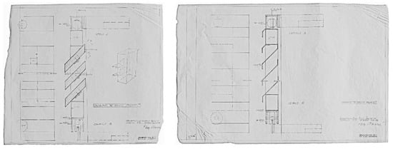 As sun protection on the Bol towers, classic roller shutters were installed. However, in his perspective drawings, Radić presented them pushed outwards in some places, hinting at his awareness of the importance of sun protection and ventilation in the Mediterranean area (Figure 7 and Figure 8).