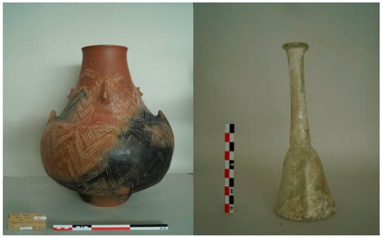 Humanoid vessel (code: AMAL 2131) and glass vessel (code: AMAL 2113).