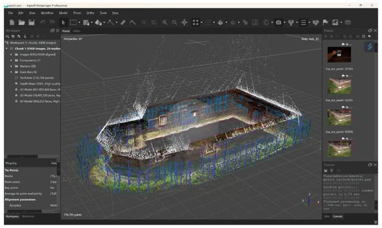 Particular attention was given to decorative elements around the doors and windows, as well as a separate scan of a wooden inscription partially hidden beneath an exterior coat rack. Figure 6 displays the point cloud resulting from the processing of the exterior images.