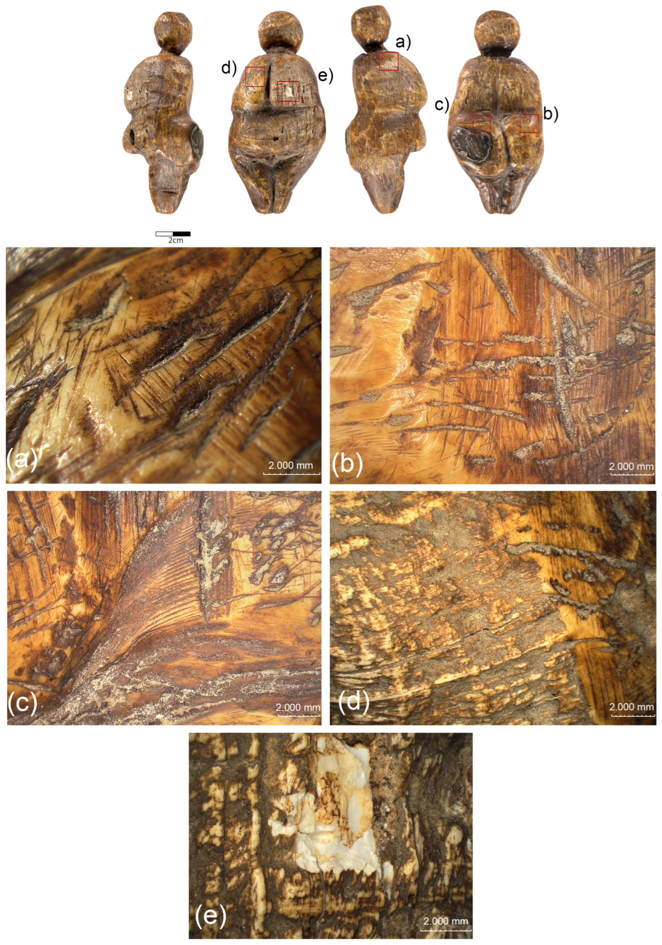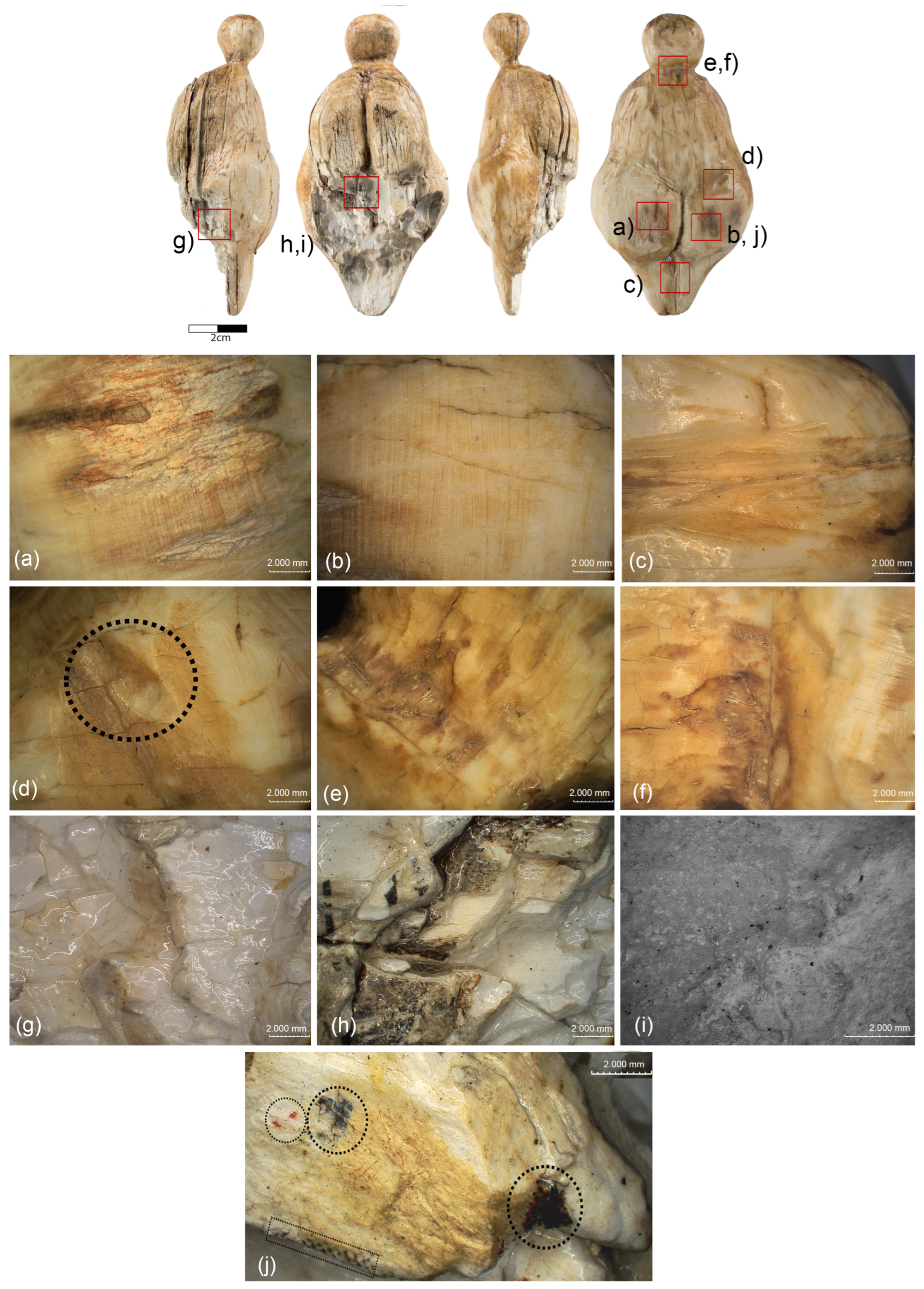 - Weber, G.W.; Lukeneder, A.; Harzhauser, M.; Mitteroecker, P.; Wurm, L.; Hollaus, L.-M.; Kainz, S.; Haack, F.; Antl-Weiser, A.; Kern, P. The microstructure and the origin of the Venus from Willendorf. Sci. Rep. 2022, 12, 2926. [Google Scholar] [CrossRef] [PubMed]