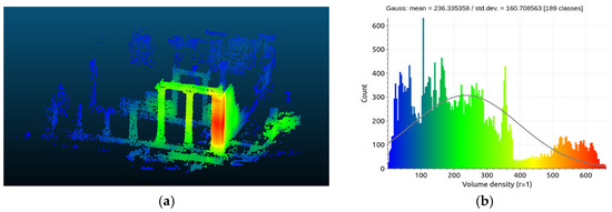 The density (a) and distribution (b) of the real data sparse point cloud.