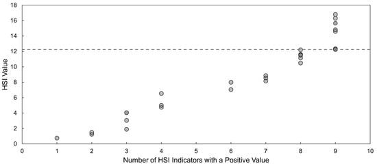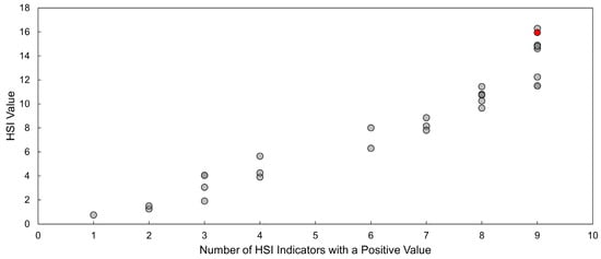 The score can be used independently or presented graphically to compare performance against industry peers (Figure 1), where the x-axis represents the number of HSI indicators with a positive value, while the y-axis shows the “HSI Value”.