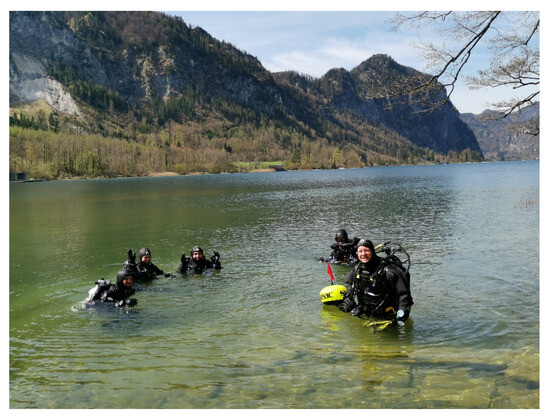 Since 2011, various methods have been used to draw the public’s attention to the vulnerability of the UNESCO World Heritage Site and underwater monuments. By marking the protected areas on the lakes, an attempt is made to make anchoring bans and fishing bans visible to the public. At the same time, different print products explain the necessity of the protection and provide more information on the significance of the sites. With participation at different annual and nationwide events in Austria, like the World Heritage Days on 18 April, the Researchers Night, or the Long Nights of the Museums, the management gets in direct contact with the regional people. By organizing exclusive guided tours for divers to the monument sites (see Figure 3) and “open doors” during field work, access to research and protection activities is given to the public on site (see Figure 4). With citizen science and school projects, public participation can be further expanded and lead to content individually adapted to the respective target group [4].