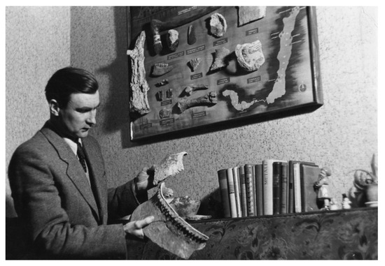 Private collector Kurt Schaefer with prehistoric finds from underwater sites of Upper Austria, picture: estate of Kurt Schaefer, Kuratorium Pfahlbauten.