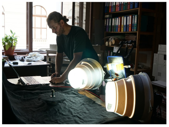 The 3D scanning and model preparation were carried out by 3D Studio Crazy Eye. In this project, different approaches were used: image-based modelling (IBM) incorporating structure-from-motion and multi-view stereo algorithms and structured-light 3D scans. Although the use of structured-light scanners is effective and offers a high level of geometric accuracy, there are deficits in terms of texture quality (see Figure 7).
