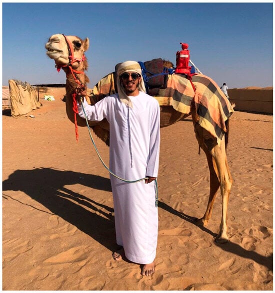 Camels have been a cornerstone of Bedouin society for millennia, serving as vital assets for transportation, sustenance, and cultural expression [13]. In recent years, camels have garnered renewed scholarly attention, particularly in the context of rapid sociocultural transformation in the Gulf. Scholars have begun to explore how camel heritage in the UAE and surrounding regions is being reshaped by globalization, heritage politics, and shifting gender dynamics. For example, Wieczorek [14] explores how Emirati women engage with camels, not only as caretakers or competitors in camel beauty contests, but as agents of cultural reproduction and innovation. This highlights gendered aspects of camel heritage that are often neglected, yet are central to understanding shifting social identities in the UAE. Similarly, AlWahaibi [15], and AlWahaibi et al. [16,17] argue for a more-than-human perspective by exploring camel-human relations in Omani Bedouin communities, emphasizing how camels are not just economic assets, but are embedded in emotional, spiritual, and ritualistic dimensions of daily life.