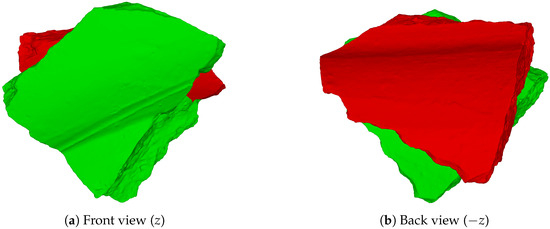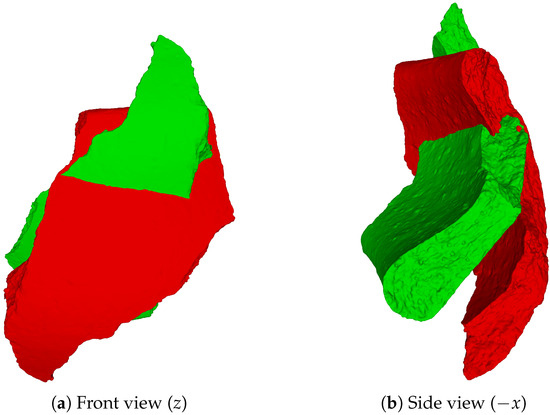 As a visual example, in Figure 6, the reddish object refers to an arbitrary sherd in its original position relative to the vessel, the bluish object represents the sherd in the normalized position, and the greenish object corresponds to the sherd in the canonical position. At this point, it is important to observe that no knowledge about a sherd’s original position in the vessel is needed to place it in its unique canonical position.