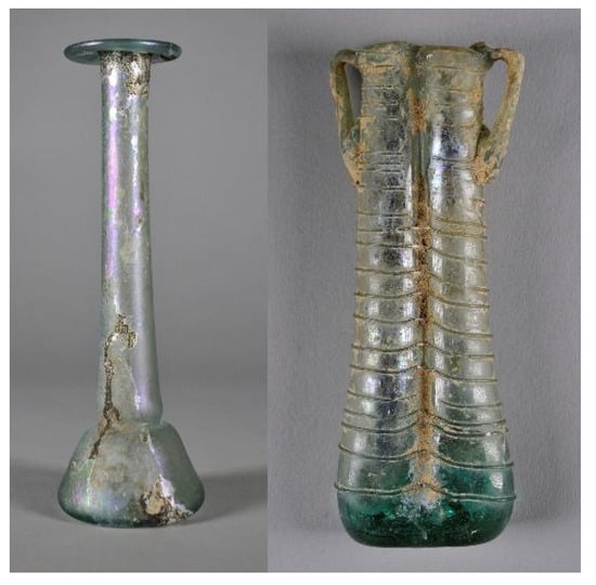 Examples of the single- (2016.19.19) and double-barreled (2016.19.48) unguentaria from the Michael C. Carlos Museum Greco-Roman Collection.