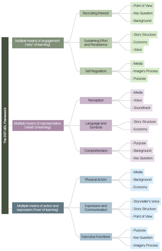 Thus, the integration of DST with UDL has emerged as a transformative educational framework that fosters inclusive and engaging learning environments through multimedia-based narrative approaches. This combination not only enhances accessibility but also cultivates critical skills, such as problem-solving, empathy, and digital literacy. Recent studies by Tyler and Moore [46] demonstrate that DST, when applied in education, significantly enhances engagement and motivation by providing interactive learning experiences where students become active participants in their educational journey.