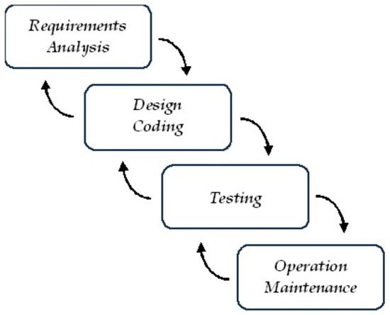 - Saravanos, A.; Curinga, M.X. Simulating the Software Development Lifecycle: The Waterfall Model. Appl. Syst. Innov. 2023, 6, 108. [Google Scholar] [CrossRef]