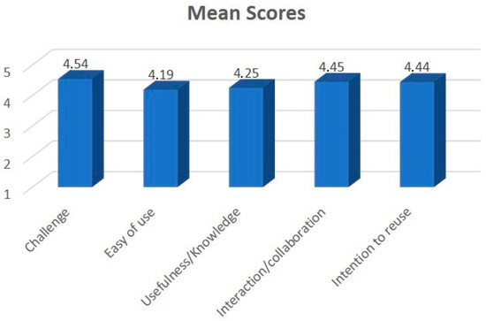 For the evaluation of the application, a questionnaire was constructed based on the existing relevant literature [3,58,59,60,61,62]. The questionnaire included demographic data, exploratory questions related to the organization of educational activity, and multiple-choice questions using a 5-point Likert scale associated with the digital application. The questions about the digital application were grouped into five categories: challenge, ease of use, knowledge-related usefulness, interaction and cooperation, and intention to reuse. The questionnaire is presented in Appendix A, while details of the evaluation process are presented in Section 7.