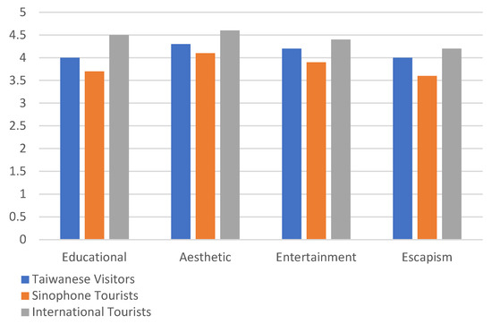 These included gender, age, education, occupation, and nationality. The regional classification of nationality followed established typologies and prior research on heritage tourism in Taiwan [20,36], grouping participants into three categories: (a) domestic Taiwanese visitors, (b) Sinophone tourists (mainland China, Hong Kong, Macau, Malaysia); and (c) international tourists (e.g., Japan, South Korea, Europe, North America).