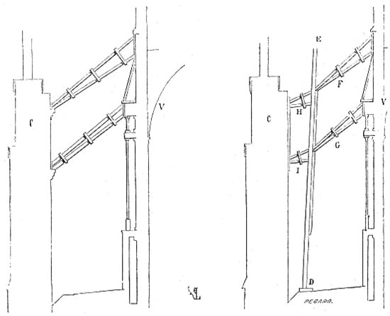 Figure 8. Section through the buttressing system of the apse of Beauvais Cathedral, illustrating the structural failure of the choir vault (graphic by Viollet-le-Duc [2]).