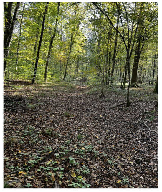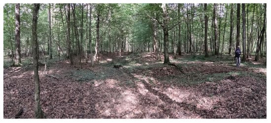 In this case, the centuriation system, with all its advantages as an efficient drainage system, was not later in use. Floods were frequent and the area is “famous” for it. There are numerous documented cases where the Roman centuriation system was later in use and constantly maintained, especially in the marshy environment [53,56], but not in this case. Current forest division visible on aerial and satellite photos does not follow Roman land division.
