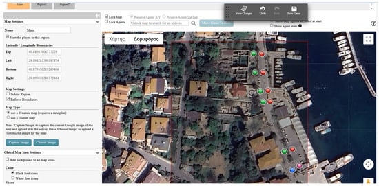 Starting the design of the application, we selected the coordinates of our location, thus setting the map on which the application would be developed (Figure 4).