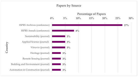 Distribution of papers by source (only sources with at least 2 papers—3% of the total).