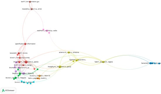 The results of the science mapping show the presence of numerous researchers and research groups actively working on the topic and recognized by the scientific community. In particular, the citation analysis (Figure 8) highlights 23 authors whose works selected for this review have been cited at least 15 times. Among these, the following stand out with over 70 citations: Yang, X. (University of Connecticut, Storrs, United States); Bruno, N. (University of Parma, Italy); Jouan, P. (University of Liege, France); Pepe, M. (University of G. d’Annunzio Chieti and Pescara, Italy); Jordan-Palomar, I. (Polytechnic University of Valencia, Spain); Baik, A. (King Abdulaziz University, Saudi Arabia); and Colucci, E. (Polytechnic University of Turin, Italy), with specializations mainly in remote sensing, cartography, surveying, Building Information Modeling, and architectural engineering.