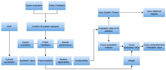 As shown in Table 1, GST and the fuzzy evaluation method were specifically selected for their adaptability in handling small samples and subjective data, overcoming limitations of traditional analytical tools regarding incomplete cultural symbol data [62]. The combined approach ensures scientific accuracy and comprehensiveness [63], providing a robust theoretical foundation for assessing the sustainable design potential of blue-and-white porcelain patterns.